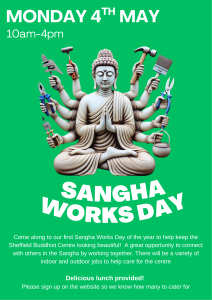04/05/2026 @ 10:00 am – 4:00 pm – This is a lovely opportunity to work alongside Sangha to help upkeep our Centre. There are indoor and outdoor jobs of all kinds. Delicious lunch provided!
